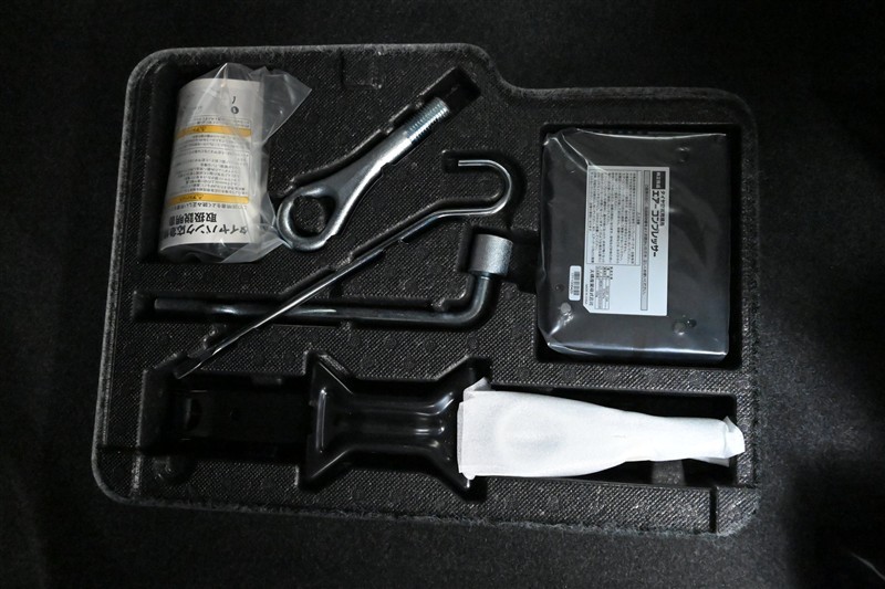 タイヤパンク応急修理キット/工具 ※助手席の足元に装備