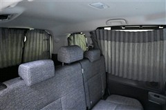 ◇後席には手動のカーテンを装備しています。日差しが強いときはカーテンを閉めて走行できます。運転席・助手席とのセパレートも可能です。