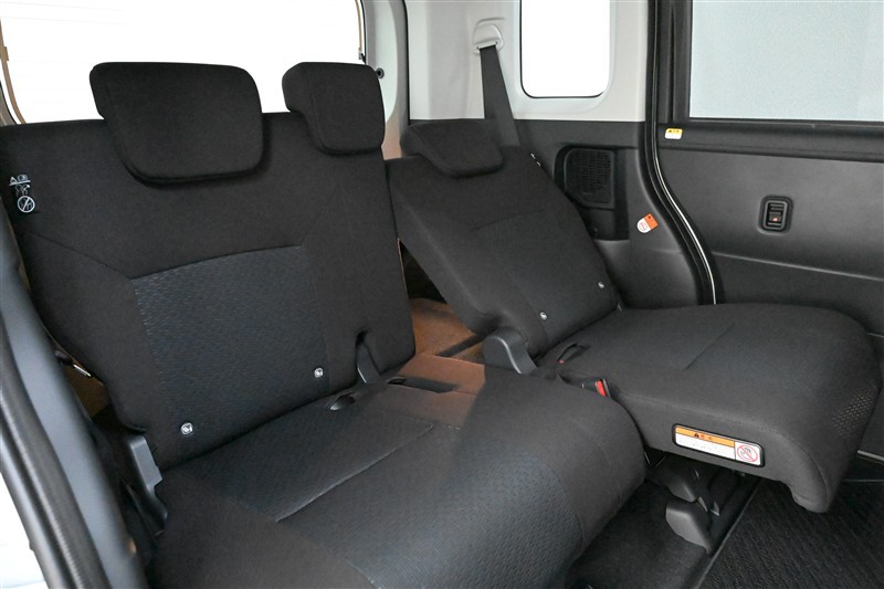 後部座席です。足元にもゆとりがあり、ゆったりと座れるシートです。 左右独立で、前後スライド調整やリクライニング調整が可能。