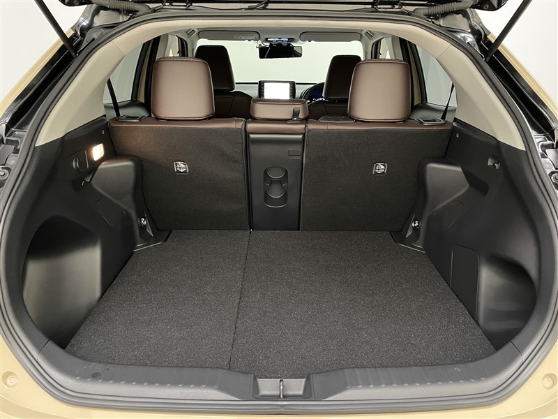 リヤシートをすべて前倒しした状態。 広いスペースが出現! 載せる荷物によりシートアレンジが可能です。