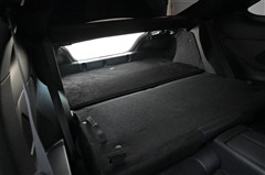後席のシートバックを前倒し、トランクスルー状態 (運転席側より撮影)です。フラットで広いスペースが生まれます。