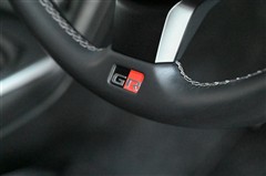 ステアリングはグリップの感触が良い本革巻きで、ステッチ仕様です。ステアリング下部には『GR』のエンブレムが入っています。