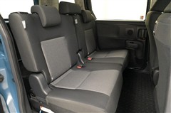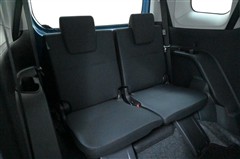 3列目シートです。 大人がしっかり座れる幅広のベンチ風シートです。ワンタッチのレバー操作で2列目シートを折りたためるため、3列目への乗り降りもラクにできます。