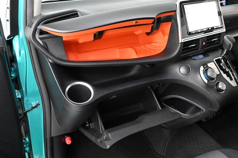 ■アッパーボックス、■カップホルダー、■オープントレイ、■グローブボックス 装備。  助手席側に充実した収納スペースを確保。