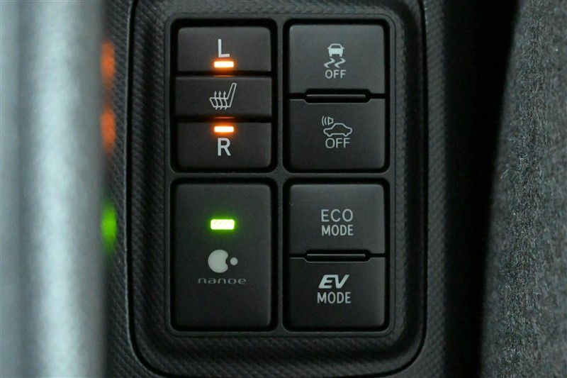 ■シートヒーター(運転席/助手席)、■「ナノイー」、■VSC OFF、■車両接近通報一時停止、■エコドライブモード、■EVドライブモード 各スイッチ 装備