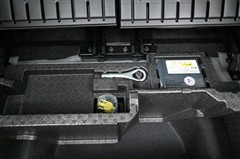 収納スペース奥にはタイヤパンク応急修理キットが格納されています。