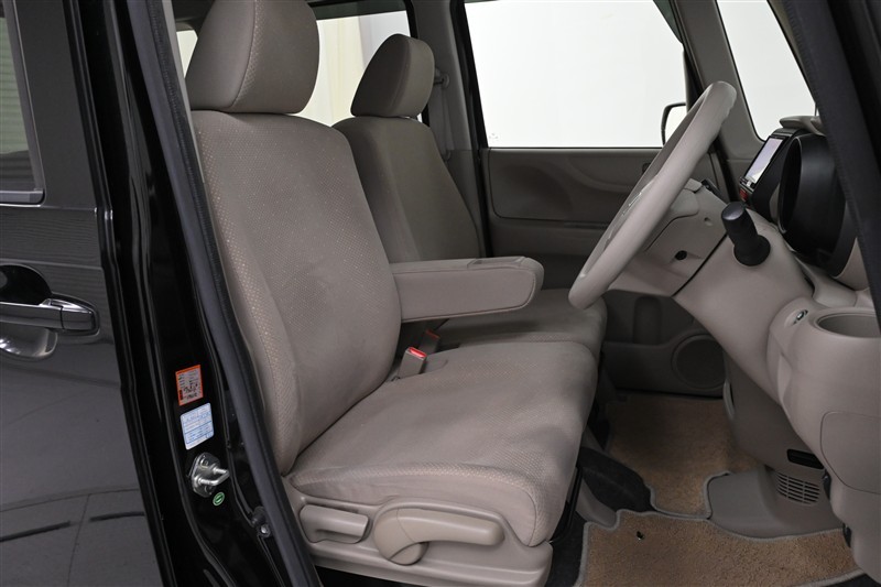 運転席/助手席です。 ベンチ風シートでゆったり座れます。 ■フロントシートアームレスト(ポケット付) 装備  使わない時にはスッキリとしまっておけます。