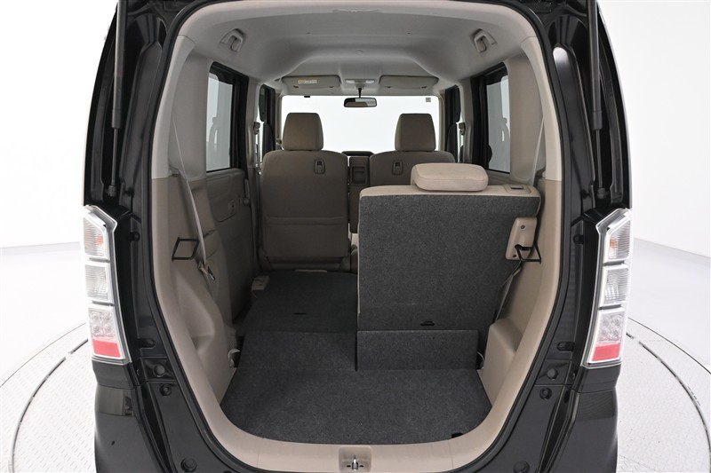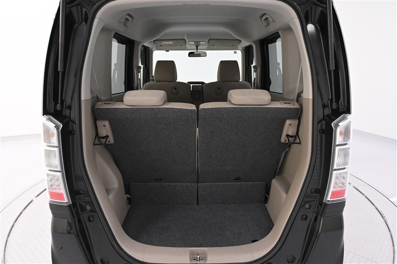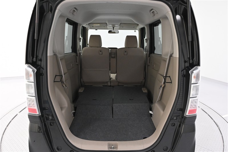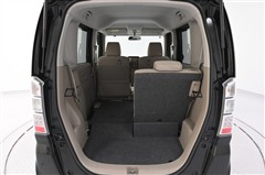 後席のシートバックを両側 前倒しした状態です。 広く低い床面で、大きな荷物も収まります。