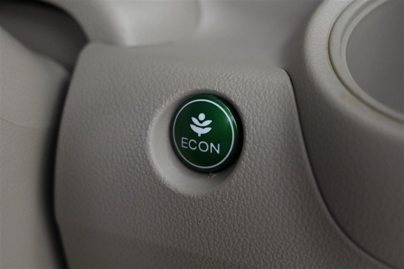 ■ECONスイッチです。  エンジンやエアコンといった、クルマ全体の動きを燃費優先で自動制御するECONモード。空調など快適性を優先したいときは、スイッチを押してOFFにできます。