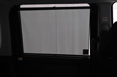 ■格納式リヤドア サンシェード 装備。 日射しのまぶしさを軽減し、外からの視線も遮ります。 使わない時はトリム内に格納できます。