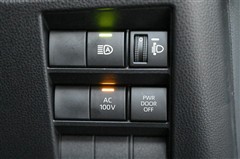■オートハイビームスイッチ、■手動光軸調整ダイヤル、■AC100Vメインスイッチ、■パワードアオフスイッチ 装備