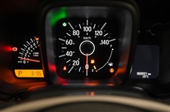 メーター全体です。中心にスピードメーター、左にタコメーターを装備。昼夜を問わず視認性の良いメーターです。