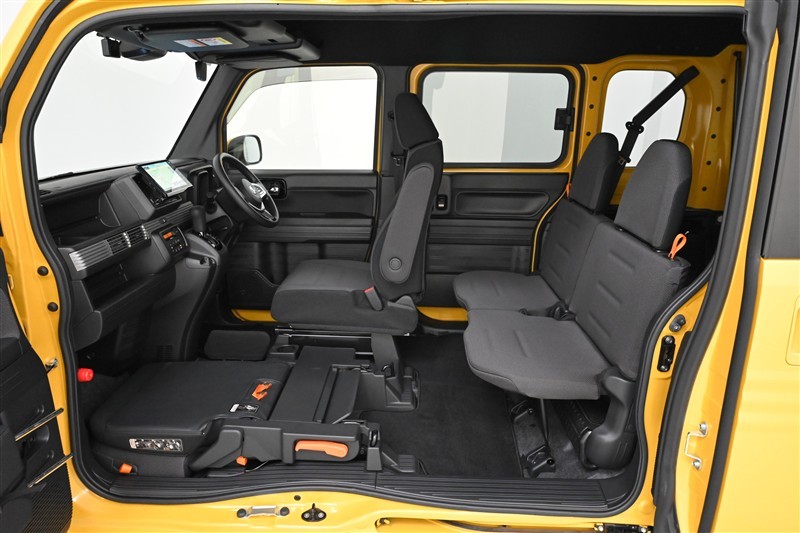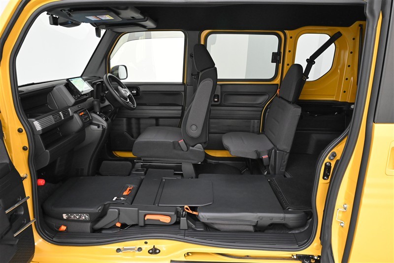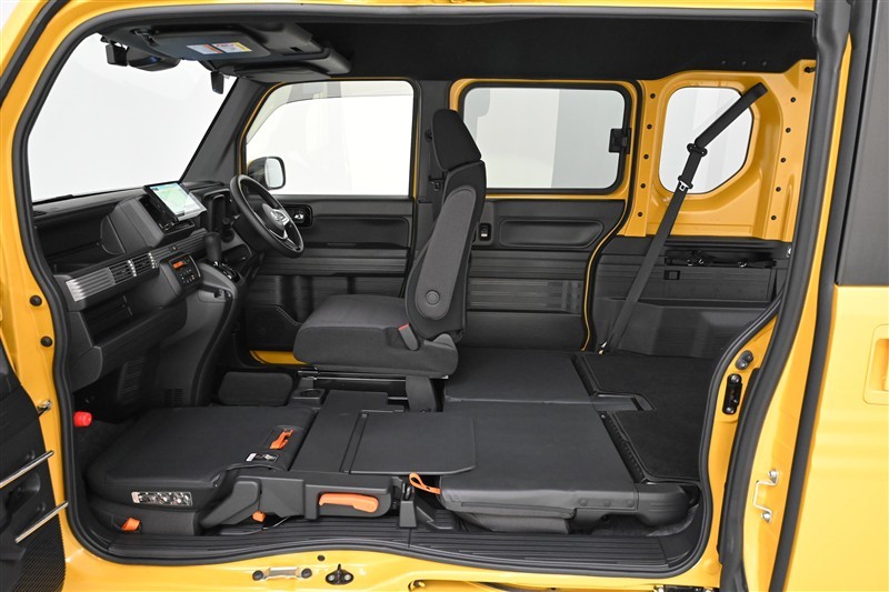 さらに運転席側後部座席をダイブインした状態です。広い荷室が現れます。