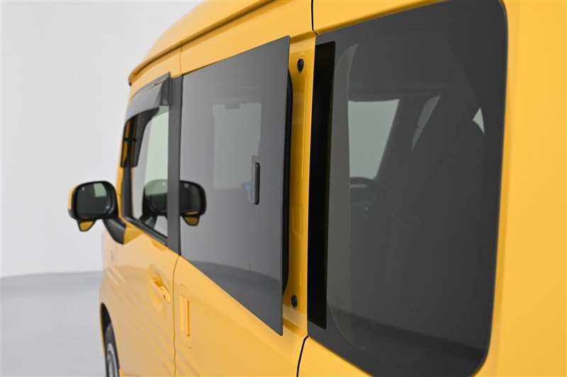 ◇左右スライドドアはポップアップ機構付ガラスです。 簡単な操作で、後席ウインドーの開閉ができます。