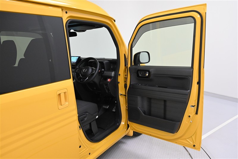 助手席ドアとスライドドアを開けた状態です。センターピラー(中央柱)が無く、さらに床が低く乗り降りがラクにできます。