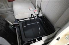 ■助手席シートアンダーボックス 装備。  シートクッションを上げると、取っ手付きで持ち運びができる収納ボックスがあります。