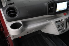 ■ドリンクホルダー(助手席)、■インパネ ロングアッパートレイ 装備。 ホコリ取りなどの掃除用品を積んでおくのにも便利なスペースです。
