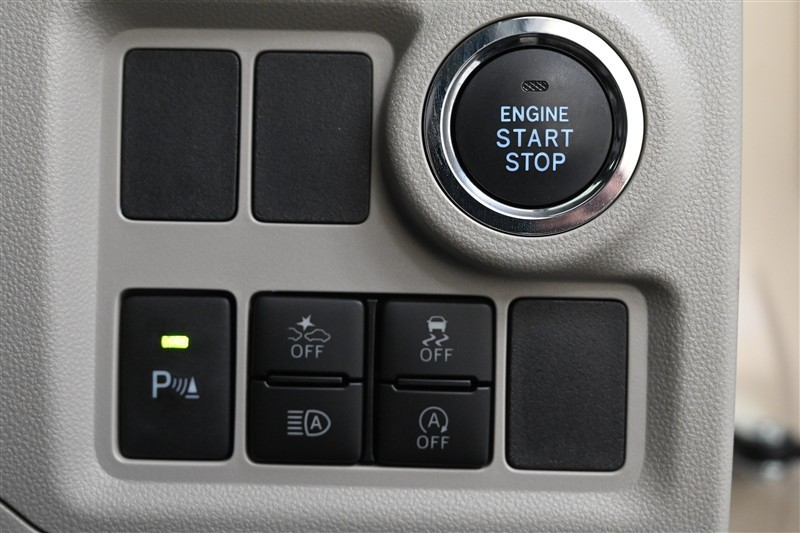 ■エンジン、■コーナーセンサー、■スマートアシストOFF、■VSC OFF、■オートハイビーム、■Stop&Start キャンセル 各スイッチ 装備。