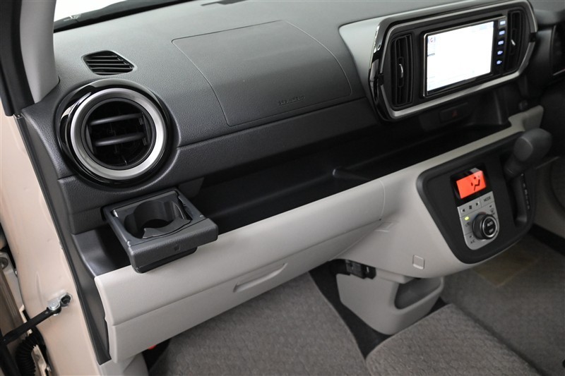 ■助手席ロングアッパートレイ、■プッシュオープン式カップホルダー 装備。 ロングアッパートレイは幅が広く、ホコリ取りなどの掃除用品を積んでおくのにも便利です。