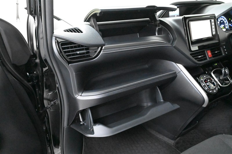 助手席側には、上段と下段にリッド付きグローブボックスを備え、中段にはオープントレイがある、3段の大型収納スペースを確保しています。