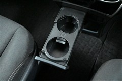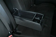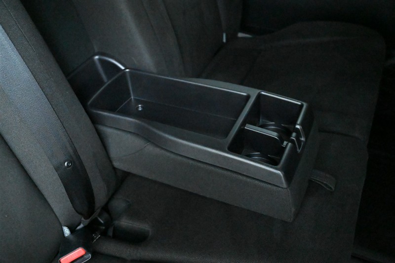 セカンドシート中央のアームレストを倒すとカップホルダーと小物を置けるスペースが現れます。