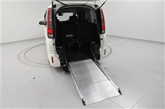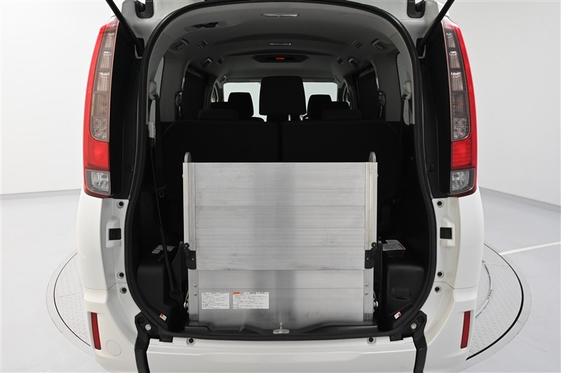 スロープセット状態。 ゆるやかなスロープで、車いすに乗車したま車内への乗降が可能です。