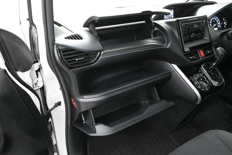 助手席側には、上段と下段にリッド付きグローブボックスを備え、中段にはオープントレイがある、3段の大型収納スペースを確保しています。