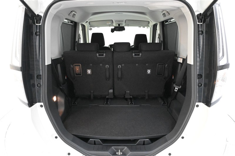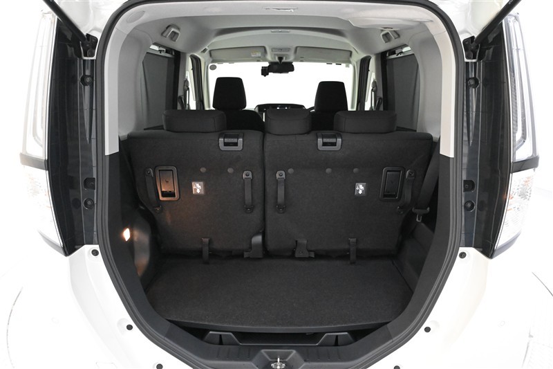 幅広いバックドア開口部と低い荷室フロア高で、重い荷物もラクに積み下ろしができます。シート背面のレバー操作で、バックドア側からもシート前後位置の調整が可能です。