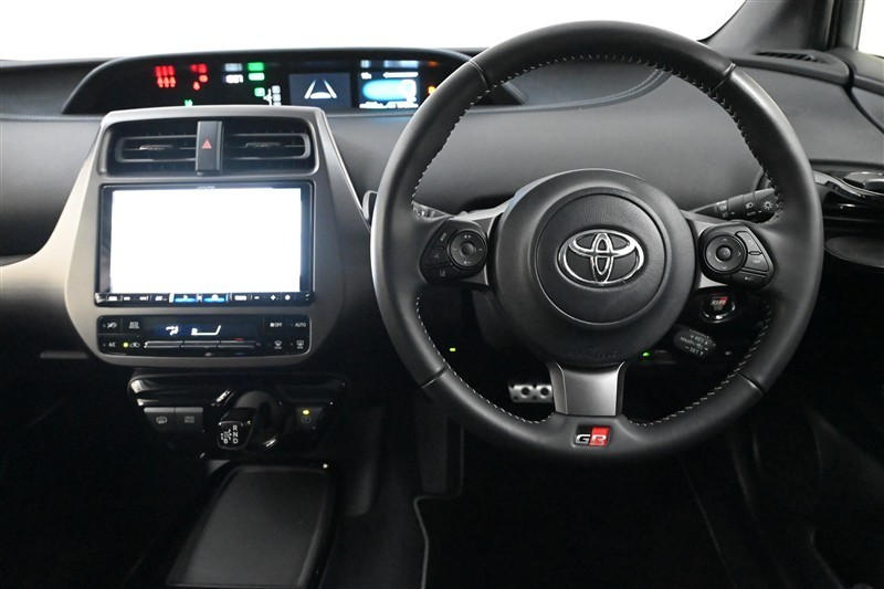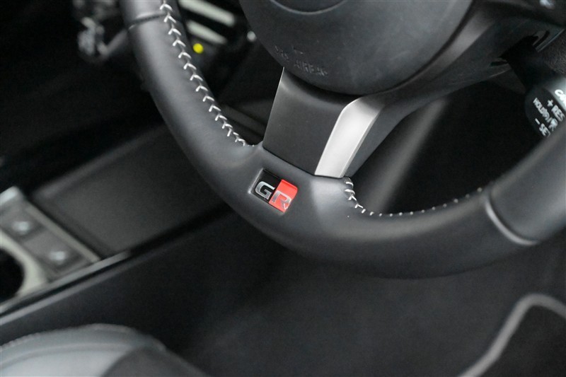 ステアリングはグリップの感触が良い本革巻きで、ステッチ仕様です。ステアリング下部には『GR』のエンブレムが入っています。