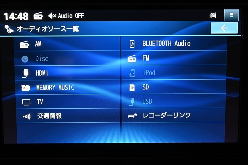 ナビ  オーディオソース選択画面です。