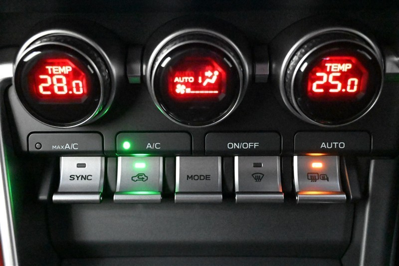 左右独立温度コントロールフルオートエアコン装備。 運転席/助手席それぞれ温度設定が可能。