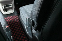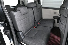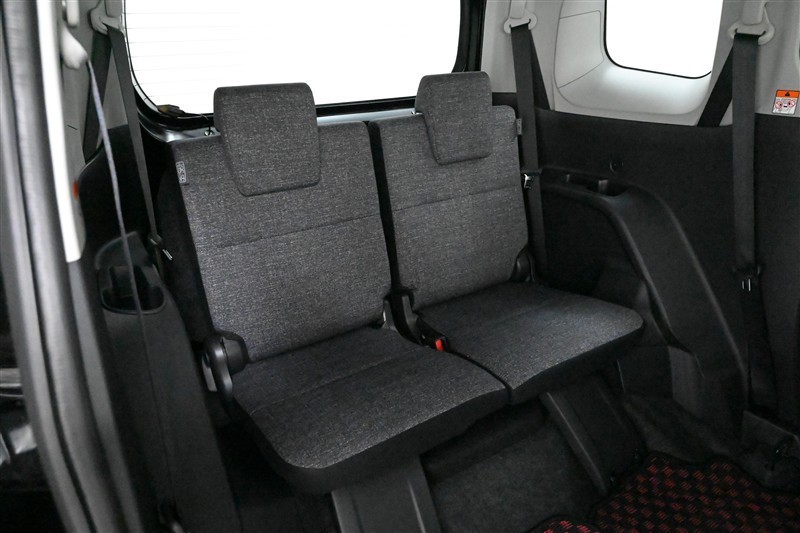 3列目シートです。 大人がしっかり座れる幅広のベンチ風シートです。ワンタッチのレバー操作で2列目シートを折りたためるため、3列目への乗り降りもラクにできます。