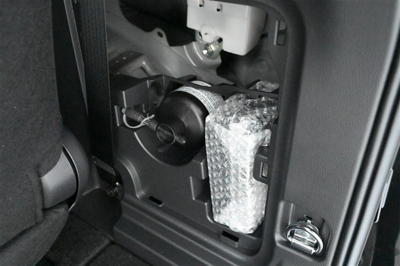 タイヤパンク応急修理キット 装備(ラゲージ側面に収納 ※カバーを外して撮影)