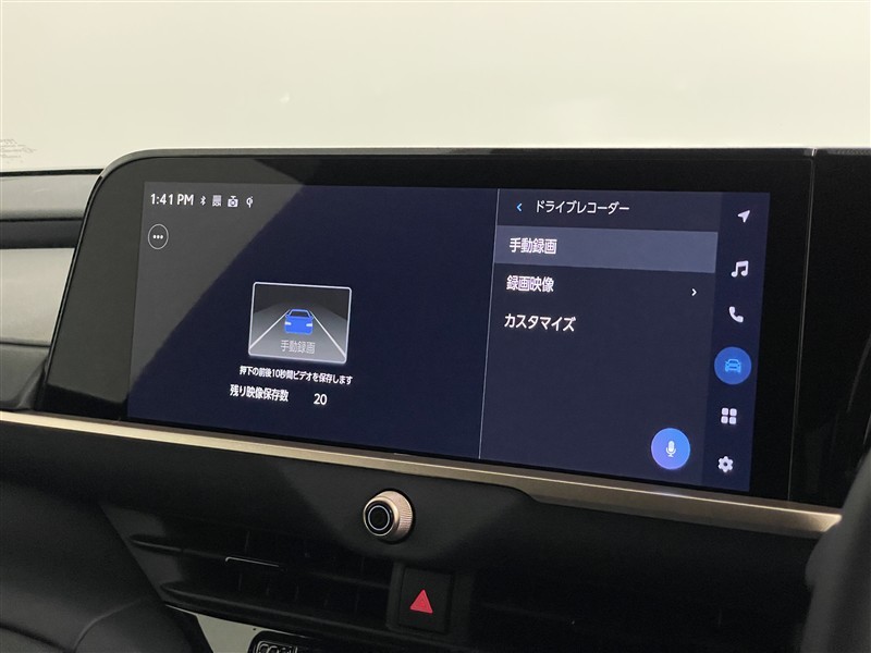 ドライブレコーダー操作画面です。 車両の前後に装着されているカメラで撮影した映像が、車載機メモリ内に録画されます。手動操作により、任意のタイミングで録画も可能。