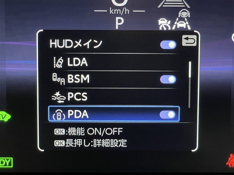 カラーヘッドアップディスプレイ装備。 運転に必要な情報を、ウインドシールドガラスの視野内に投影します。