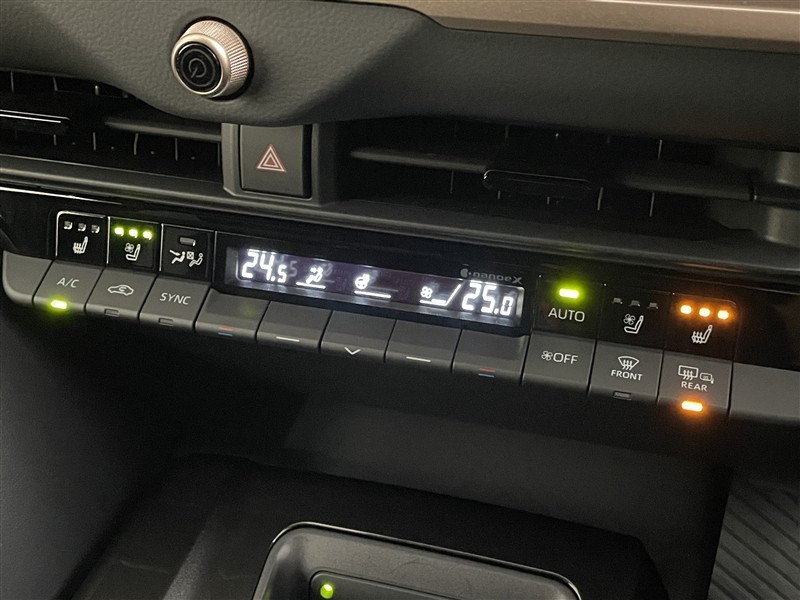 左右独立温度コントロールフルオートエアコン装備。 運転席/助手席それぞれ温度設定が可能。