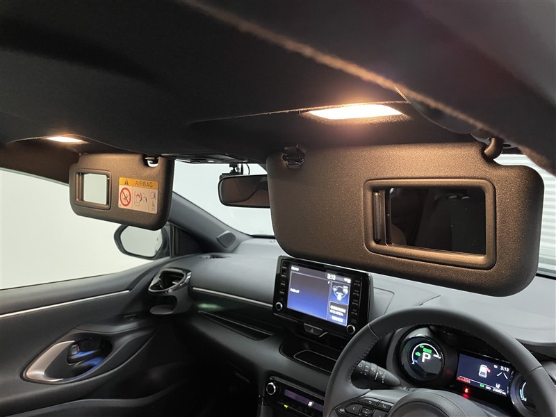 運転席/助手席 バニティミラー付サンバイザー 装備。 バニティミラーのカバーを開けると点灯する天井照明付で、暗い場所や夜でも便利です。