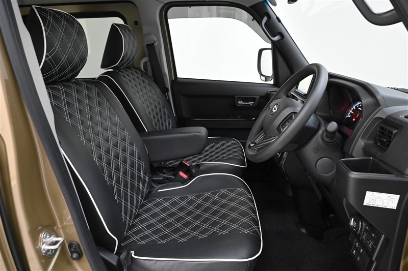 運転席/助手席です。フロントシートアームレストを装備しております。手前に引き出してご使用下さい。※全座席にフルシートカバーを装着しております。