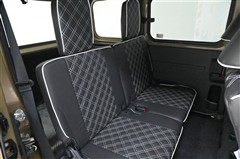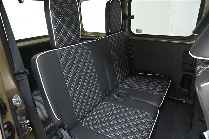 後部座席はベンチタイプです。簡単な操作で座席を足元スペースに格納できます。大型のヘッドレストを装備しておりますので後ろの方も安心です。