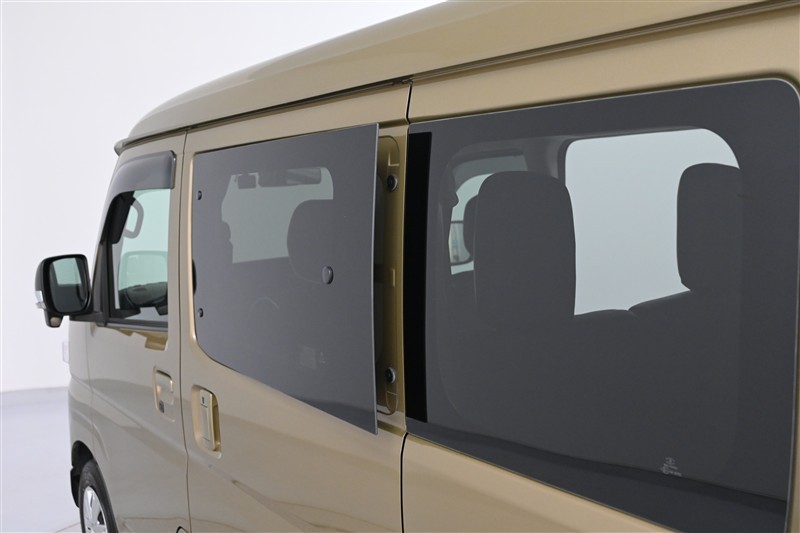 ◇左右スライドドアはポップアップ機構付ガラスです。 簡単な操作で、後席ウインドーの開閉ができます。換気などにお役立て下さい。