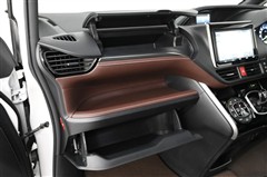 助手席側には、上段と下段にリッド付きグローブボックスを備え、中段にはオープントレイがある、3段の大型収納スペースを確保しています。