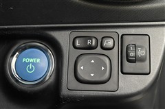 ■パワースイッチ、■ドアミラースイッチ、■手動光軸調整ダイヤル 装備。  電動でドアミラー鏡面の角度調整、格納/復帰ができます。
