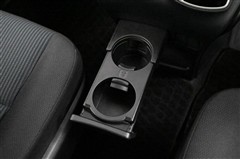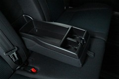 セカンドシート中央のアームレストを倒すとカップホルダーと小物を置けるスペースが現れます。