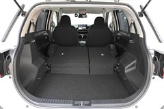 リヤシートのシートバックを両側 前倒しした状態です。 大きな荷物や幅のあるものを積むことができます。