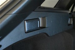 ラゲージ側面レバーです。 レバーを引くだけでシートバックが前に倒れ、ワイドなスペースが出現します。