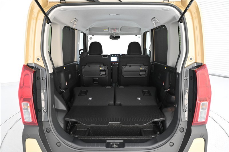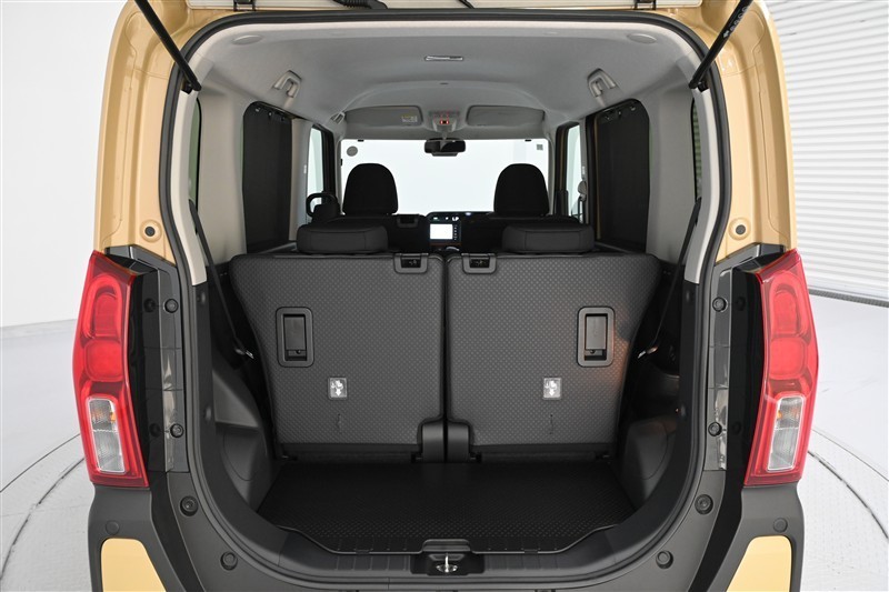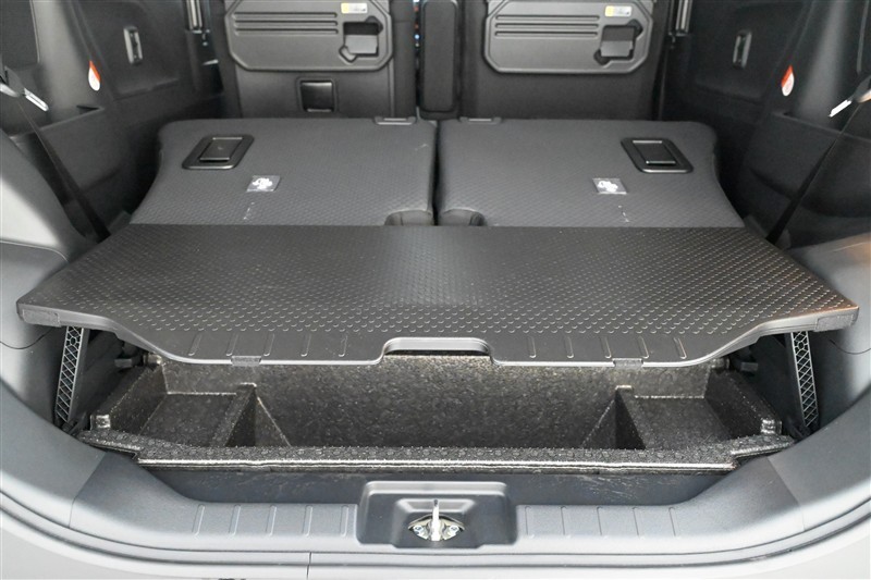 ラゲージスペースです。リヤシート背面とデッキボード表面は防水機能付きのため、濡れた荷物も気にせず積み込めます。
