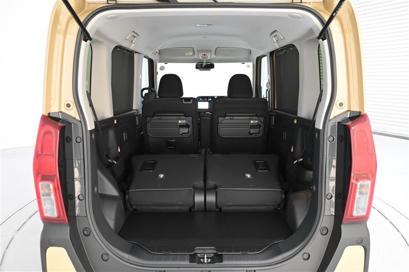 後席シートバックを両側倒した状態です。 奥行きがあるスペースになります。