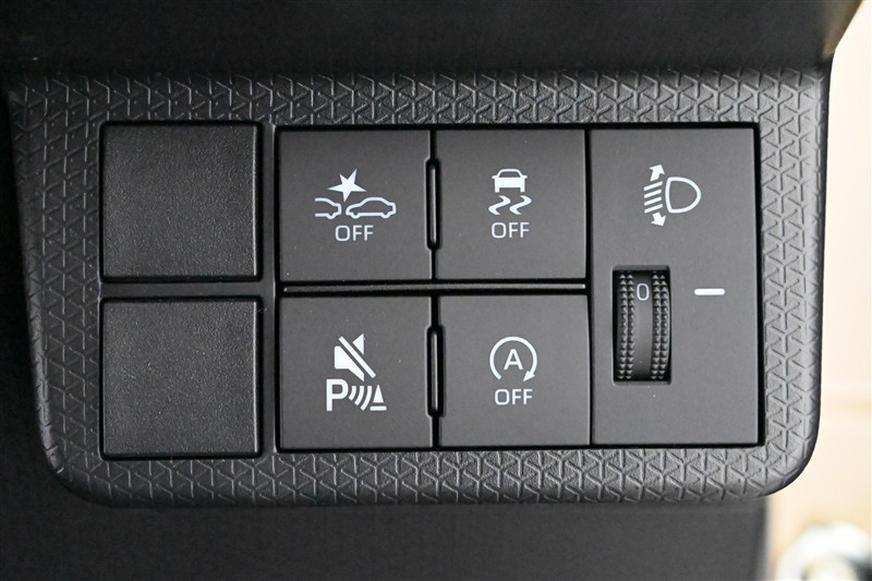 ■スマートアシストOFF、■VSC・TRC OFF、■コーナーセンサー、■eco IDLE OFF 各スイッチ、■手動光軸調整ダイヤル 装備