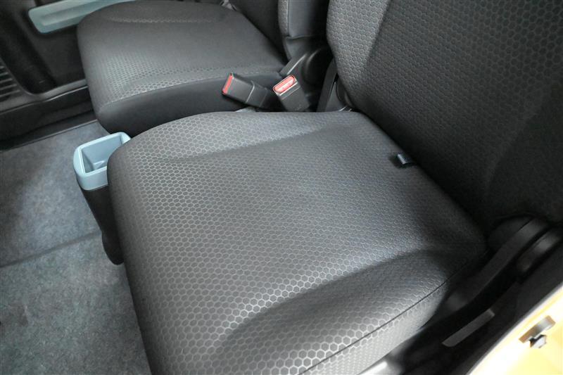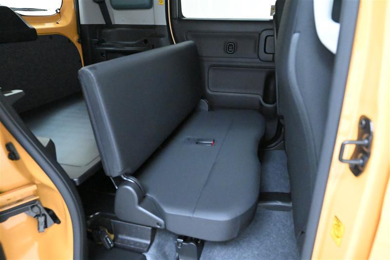 後部座席はベンチタイプです。簡単な操作で座席を足元スペースに格納できます。