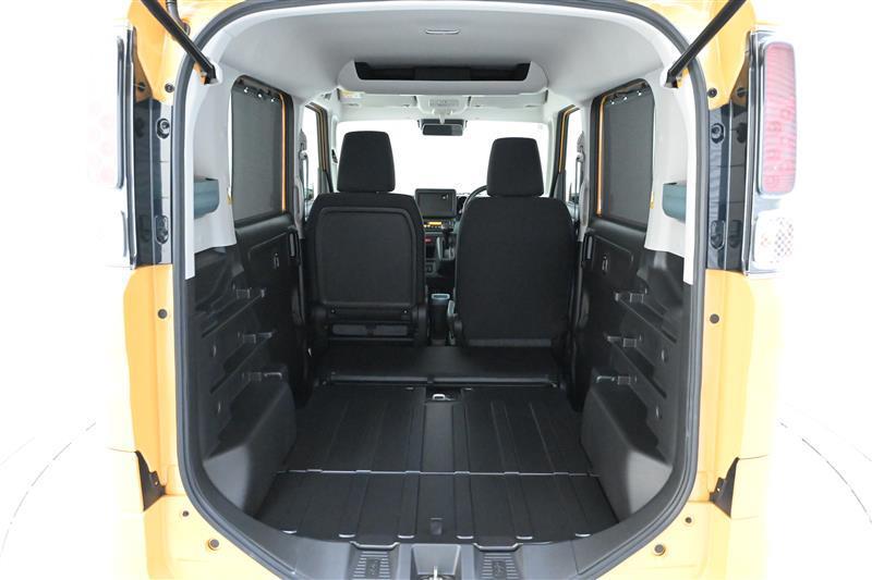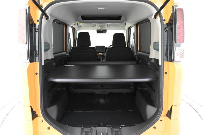 後席を格納してフルフラットカバーを装着すれば、隙間のない平らな床面の荷室空間になります。
